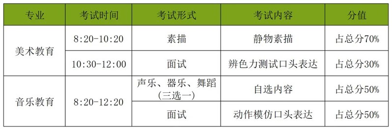 1、考生可报考我校学前教育、美术教育或音乐教育中的一个专业,也可跨专业填报,如“学前教育+美术教育”或“学前教育+音乐教育”。