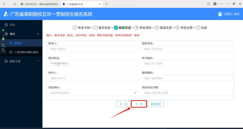 (二)按系统提示,如实填写考生本人(非家长)信息