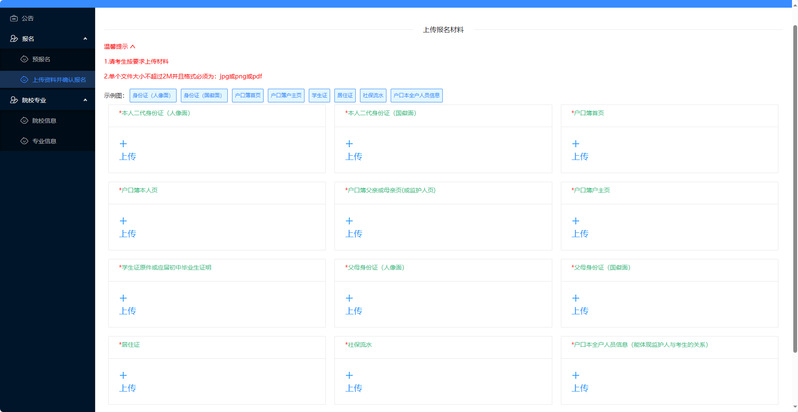(5)随迁子女考生还需上传父母身份证、居住证、社保流水、户口本全户人员信息(能体现监护人与考生的关系)