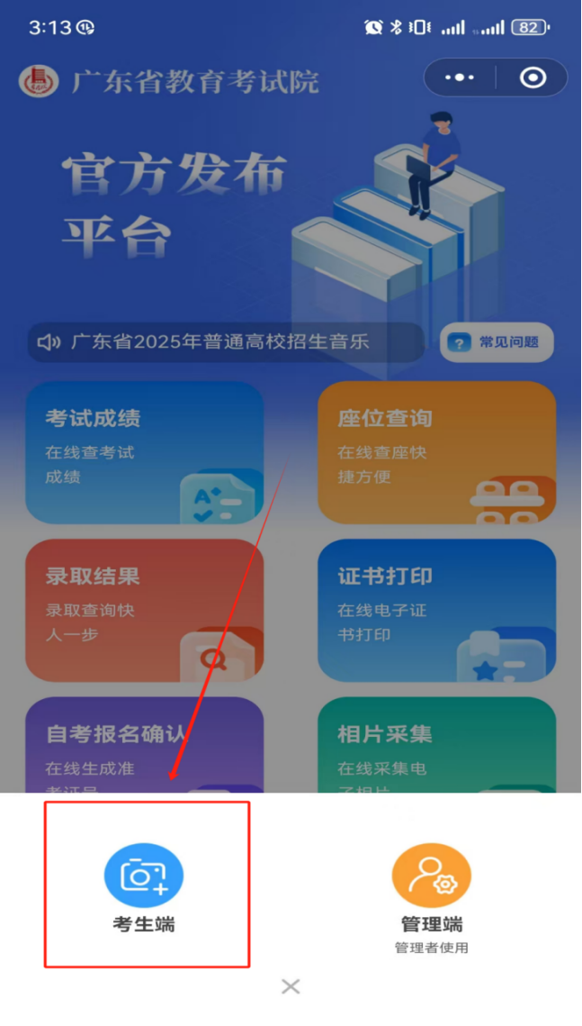 3. 进入“广东省教育考试院”微信公众号,点击下方小程序
