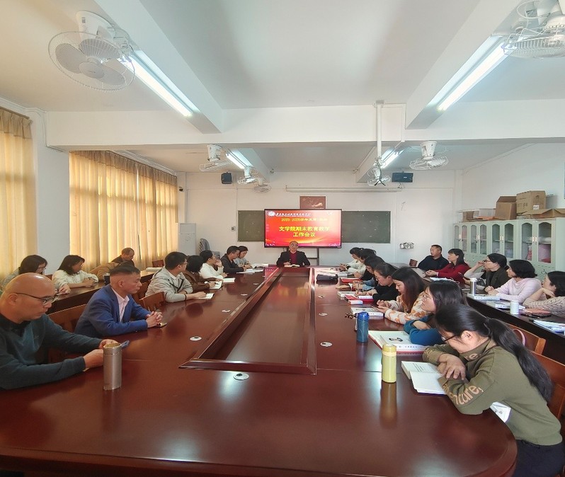 为进一步扎实推进期末阶段教育教学、学生管理等各项工作,确保学院期末工作顺利结束,1月5日下午,文学院在高州校区教学楼 401室召开期末教育教学工作会议,文学院全体教师参会。会议由文学院党总支书记苏文胜主持。
