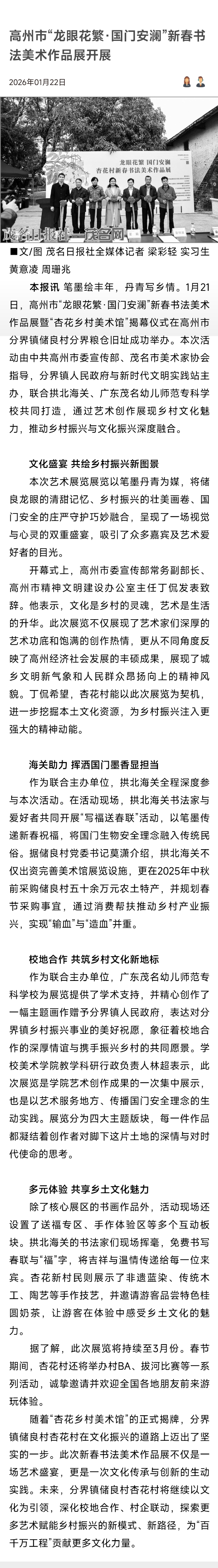 【茂名日报社】高州市“龙眼花繁·国门安澜”新春书法美术作品展开展