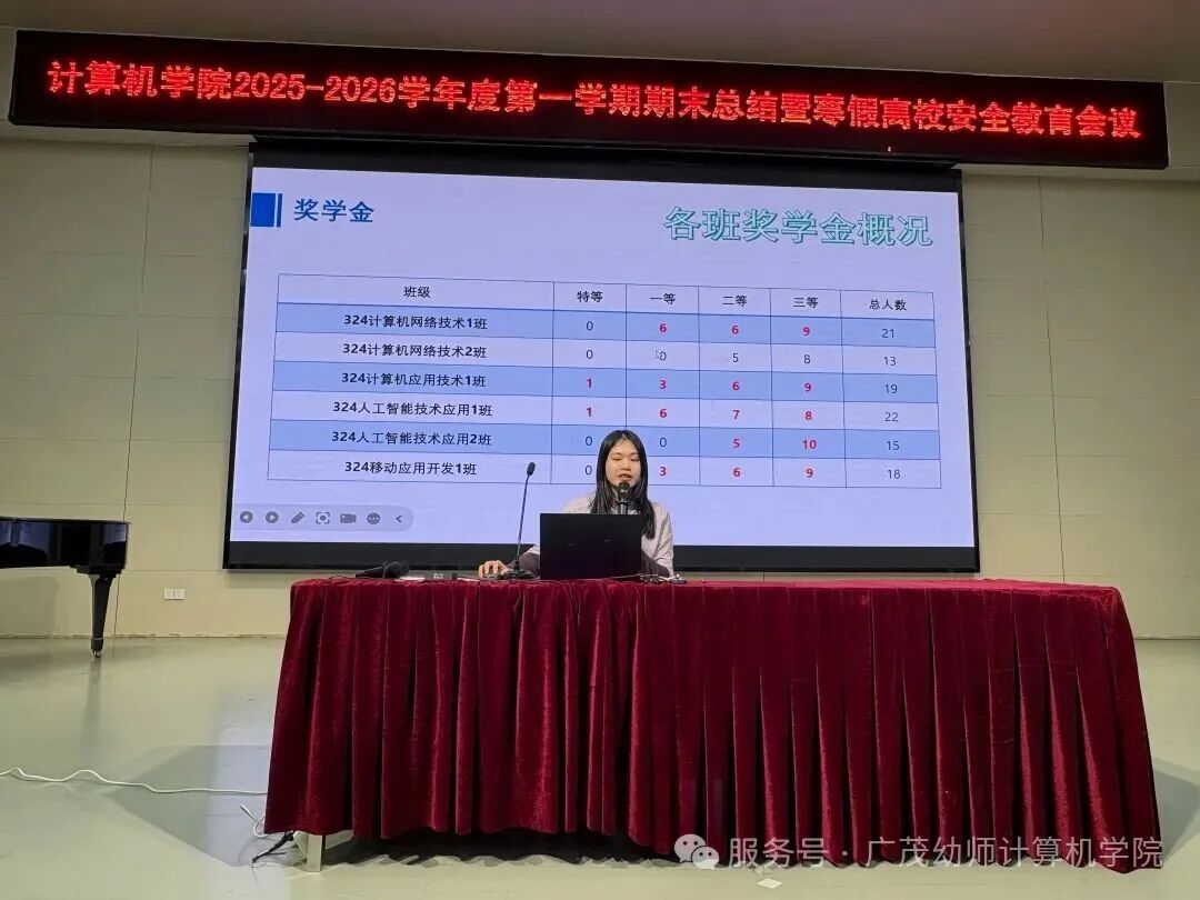 2026年1月11日、1月12日,计算机学院分别在各班教室和闻韶院召开了2025~2026第一学期期末总结大会,出席本次会议的有各班班主任、专职辅导员李艳云、招雅丽以及全体学生。