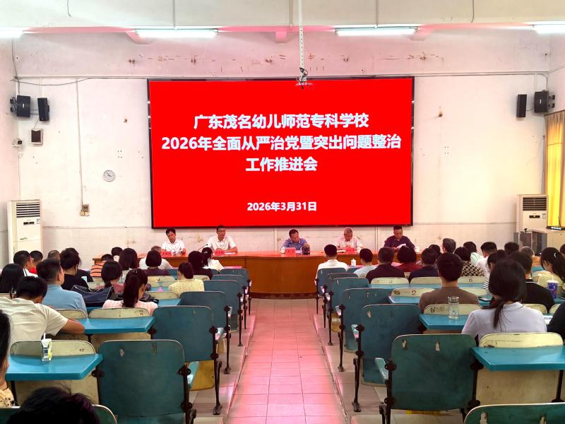 2026年3月31日,我校在高州校区师训楼218室召开2026年全面从严治党暨突出问题整治工作推进会。本次会议深入学习贯彻二十届中央纪委五次全会精神、教育部2026年教育系统全面从严治党工作视频会议精神及上级有关会议精神,全面总结学校2025年全面从严治党工作情况,部署2026年重点工作任务。市教育局党组成员、市纪委监委驻市教育局纪检监察组组长彭亮,学校党委书记余义才,党委副书记、校长姚大斌,党委专职副书记吴月明,党委委员、纪委书记莫明波,党委委员、副校长吴东出席会议。会议由姚大斌主持。