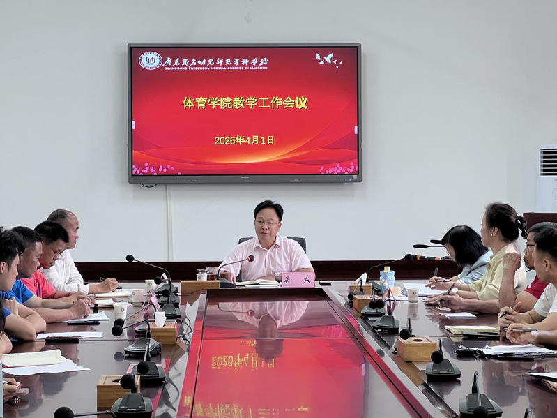 为全面落实立德树人根本任务,深化教育教学改革,压实育人责任,统筹推进两校区体育教学工作高质量发展,2026年4月1日至2日,体育学院分别在茂名校区弘文楼609会议室、高州校区行政楼2楼会议室分别召开2026年教学工作会议。学校党委委员、副校长吴东,教务部部长黎雪琼,体育学院党总支书记梁泳文、党总支专职副书记莫涛、行政负责人陈世红和全体教职工参加会议。