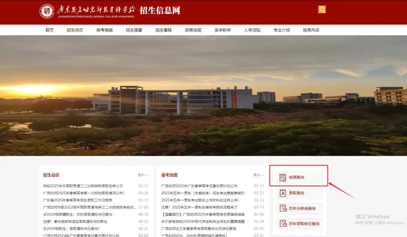 电脑端登录学校招生信息网查询广东茂名幼儿师范专科学校招生信息网(网址:https://zs.gdpnc.edu.cn),点击右侧“成绩查询”进入查询系统,输入身份证号及姓名即可查询术科考场情况。